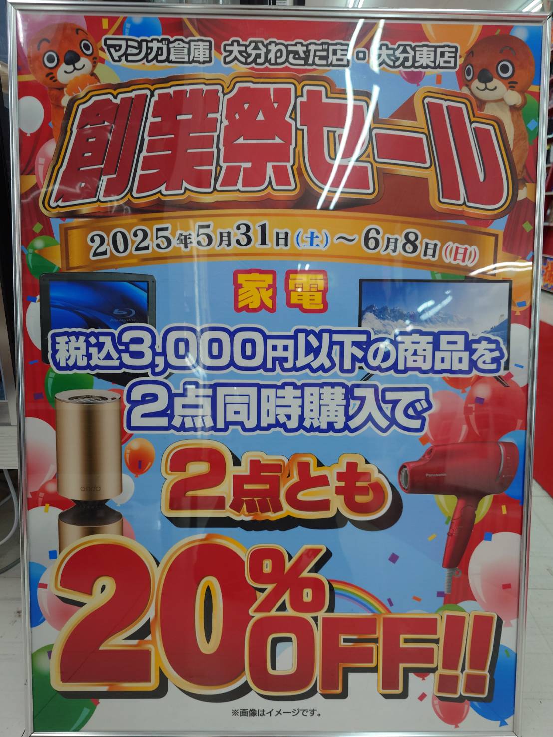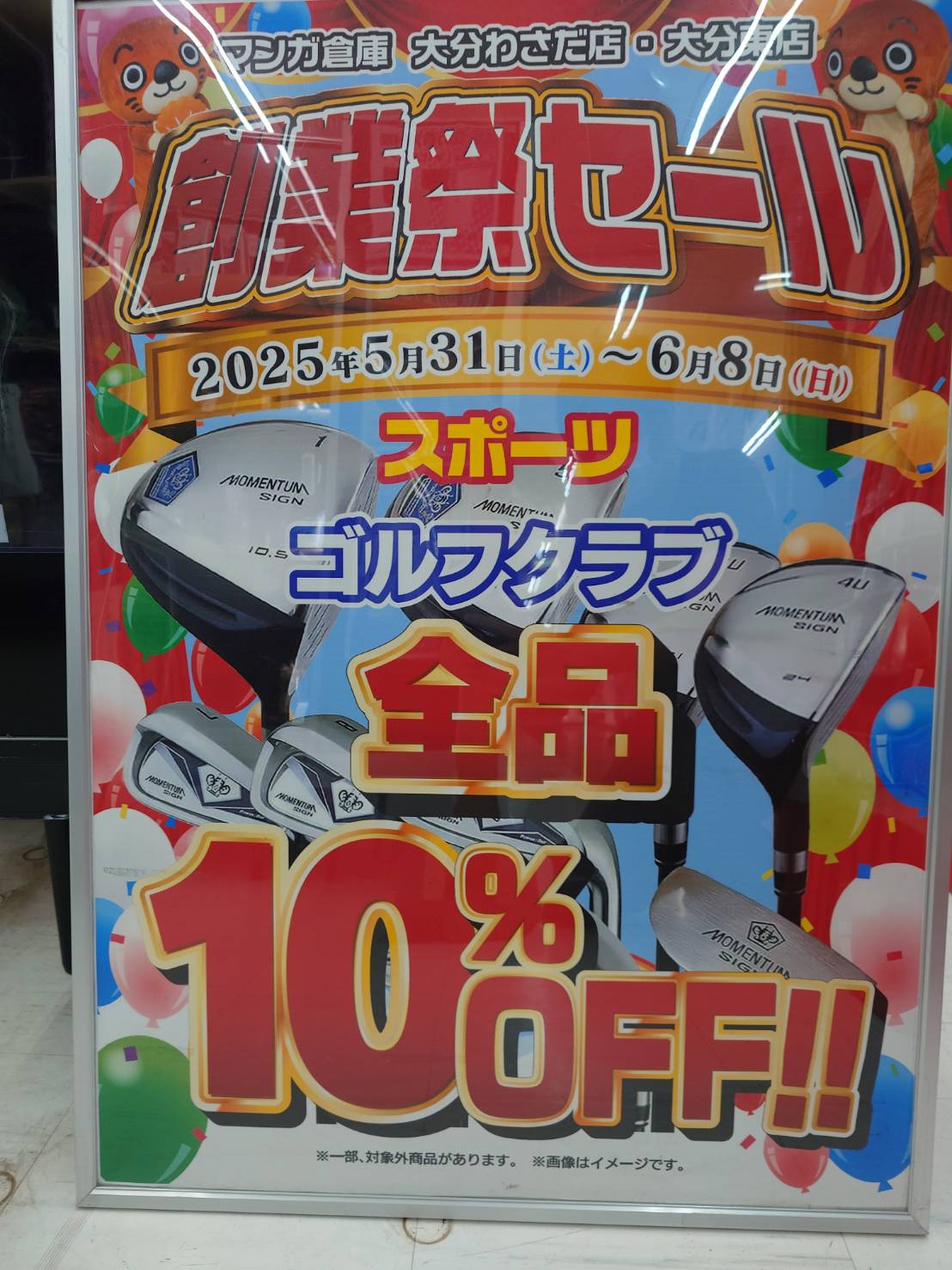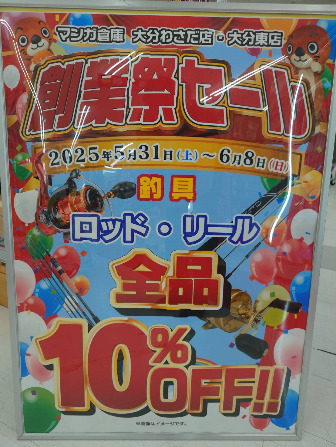 2025.05.31 イベント情報 takalab_5 ★マンガ倉庫大分東店では現在、創業祭セールを実施中です!★ 【創業祭セーーーールゥゥゥゥ!】 マンガ倉庫大分東店では現在、創業祭セールを実施中です! 釣具コーナーではロッド・リールがそれぞれ10%オフ! ゴルフコーナーではゴルフクラブが全品10%オフ! 家電コーナーでは、税込3000円以下の商品を2点以上同時購入で、対象商品が全て20%オフ! セール期間は5月31日(土)から6月8日(日)まで! お得に買えるこの機会、見逃す手はないぞ!(ΦωΦ) 皆様のご来店、心からお待ちしております! コメントを残す コメントをキャンセルメールアドレスが公開されることはありません。 ※ が付いている欄は必須項目ですコメント ※ 名前 ※ メール ※ サイト 新しいコメントをメールで通知 新しい投稿をメールで受け取る Δ
