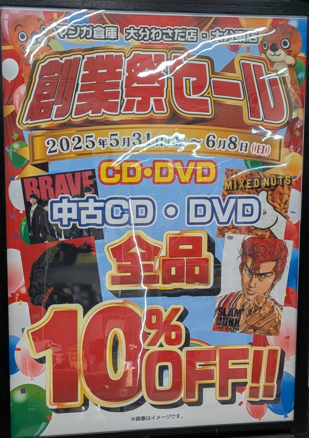 2025.06.06 イベント情報 takalab_2 ★《6月8日まで》CD·DVDコーナー創業祭セールを開催中です!★ CD·DVDコーナーからお買い得情報です! ただいま売り場にて創業祭セールを開催中です! 中古のCD·DVD·Blu-ray商品が全品10%OFF!! 6/8までの期間限定! この週末はぜひCD·DVDコーナーへお立ち寄りくださいませ! コメントを残す コメントをキャンセルメールアドレスが公開されることはありません。 ※ が付いている欄は必須項目ですコメント ※ 名前 ※ メール ※ サイト 新しいコメントをメールで通知 新しい投稿をメールで受け取る Δ