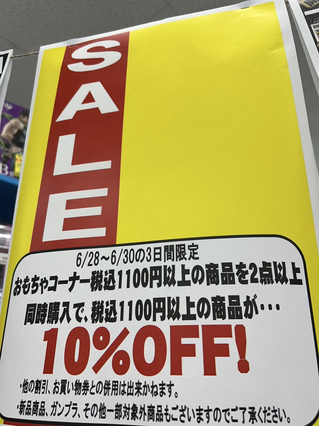 2025.06.28 未分類 takalab_1 本日より セール開催!おもちゃ1000円以上2点同時購入で対象商品が10パーセントOFF! おもちゃからお知らせ‼️ 本日より セールやっちゃいまーす! 1000円以上2点同時購入で対象商品が10パーセントOFF! 詳しくは売り場ポップ見てね。 是非 東店にご来店ください♪ お待ちしてまーす☆ コメントを残す コメントをキャンセルメールアドレスが公開されることはありません。 ※ が付いている欄は必須項目ですコメント ※ 名前 ※ メール ※ サイト 新しいコメントをメールで通知 新しい投稿をメールで受け取る Δ