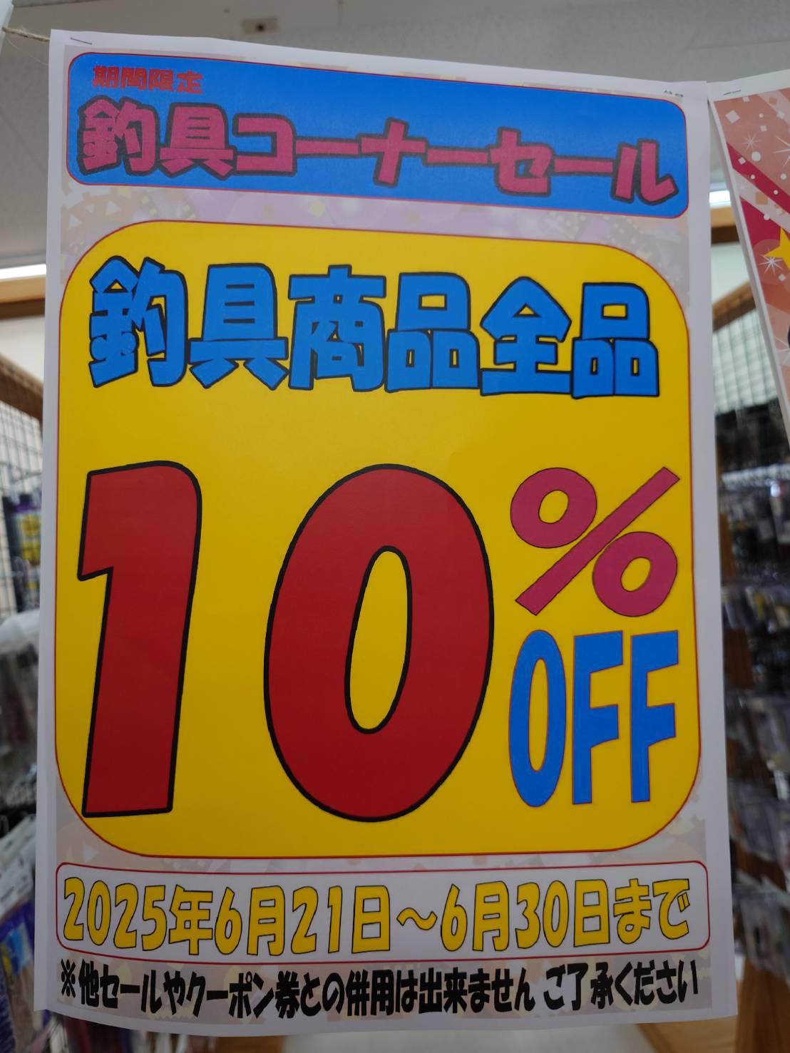 2025.06.30 釣具 takalab_6 【本日セール最終日!】 マンガ倉庫大分東店にてセールを開催中です! 釣具コーナーの商品が、なんと全品10%OFF!ロッドやリールだけでなく、ルアー・エギ、釣具小物もすべてが10%OFFで購入できちゃいます! ※他セールや割引券との併用は出来ませんのであらかじめご了承ください セールは期間は6月21日(土)〜6月30日(月)!セール最終日となりました!お得に買えるこのチャンス、お見逃しなく! 皆様のご来店、心よりお待ちしております! コメントを残す コメントをキャンセルメールアドレスが公開されることはありません。 ※ が付いている欄は必須項目ですコメント ※ 名前 ※ メール ※ サイト 新しいコメントをメールで通知 新しい投稿をメールで受け取る Δ