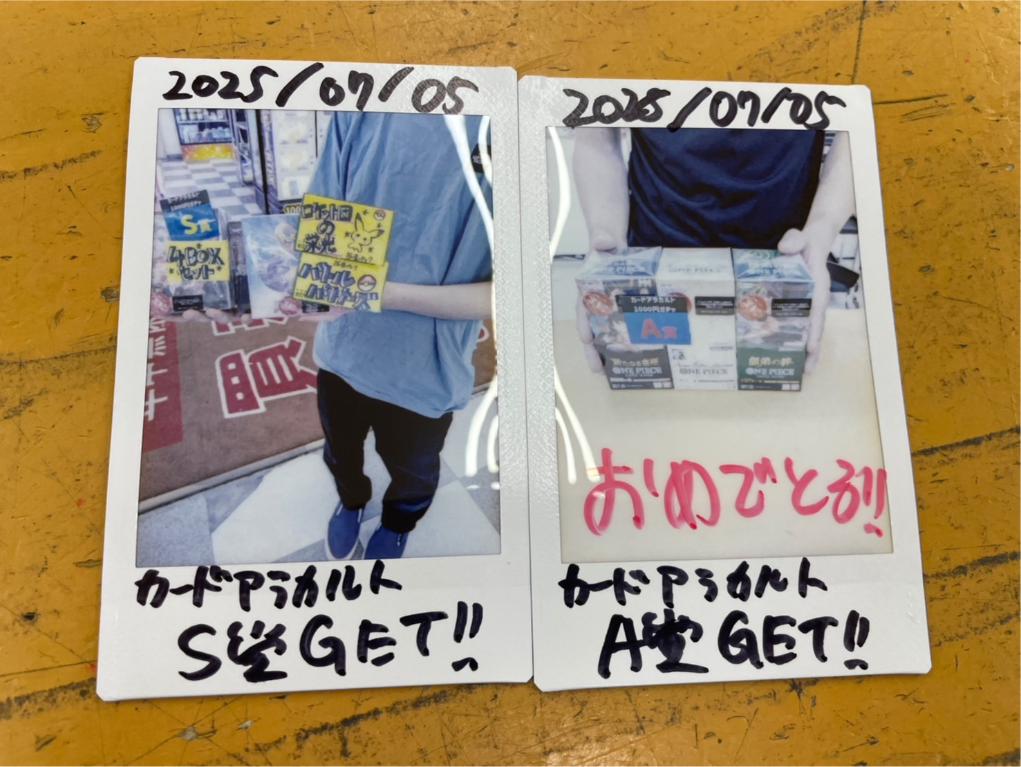 2025.07.06 ガチャ takalab_5 カードアラカルト1000円ガチャS賞、A賞出ました!! カードアラカルト1000円ガチャS賞、A賞出ました!! おめでとうございます!! 日曜日も当たりが期待できそうです! ご来店お待ちしております! コメントを残す コメントをキャンセルメールアドレスが公開されることはありません。 ※ が付いている欄は必須項目ですコメント ※ 名前 ※ メール ※ サイト 新しいコメントをメールで通知 新しい投稿をメールで受け取る Δ
