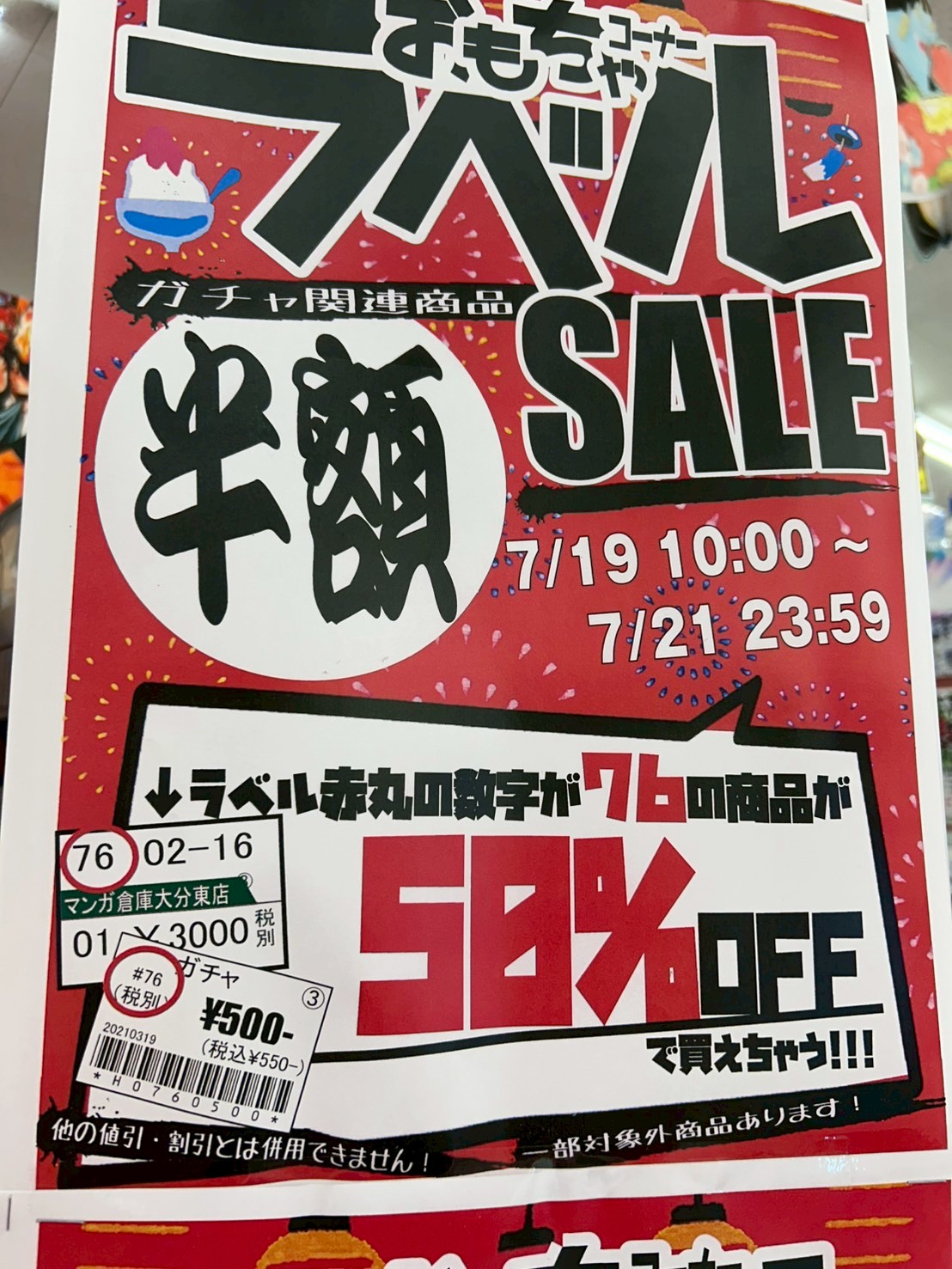 2025.07.21 イベント情報 takalab_5 【🔥🔥🔥半額🔥🔥🔥】 【🔥🔥🔥半額🔥🔥🔥】 おもちゃコーナーで 7/21(月)まで…! ラベルセールやってます 😳✨ 値札シールの左上にある数字が “76”の商品が50%OFF!!!!!!! 詳しくは、店内ポップをみてね✊🏻 – からぴちガチャも一回200円! おもちゃコーナーのガチャは、なんと当たりが増量中♥️🧸 気になっていたものは運試しチャンス🌞✨ ぜひ遊んでみてくださいね🏖 マンガ倉庫大分東店で お待ちしております 🙌🏻♥️ コメントを残す コメントをキャンセルメールアドレスが公開されることはありません。 ※ が付いている欄は必須項目ですコメント ※ 名前 ※ メール ※ サイト 新しいコメントをメールで通知 新しい投稿をメールで受け取る Δ