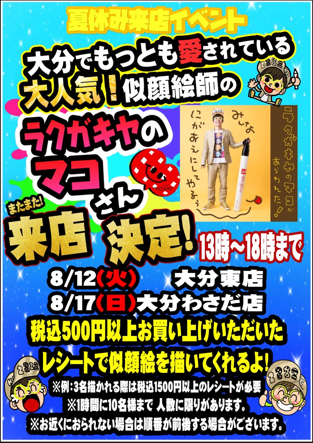 8/12~8/15★マンガ倉庫大分わさだ店・大分東店 夏休み日替わりイベント開催!★