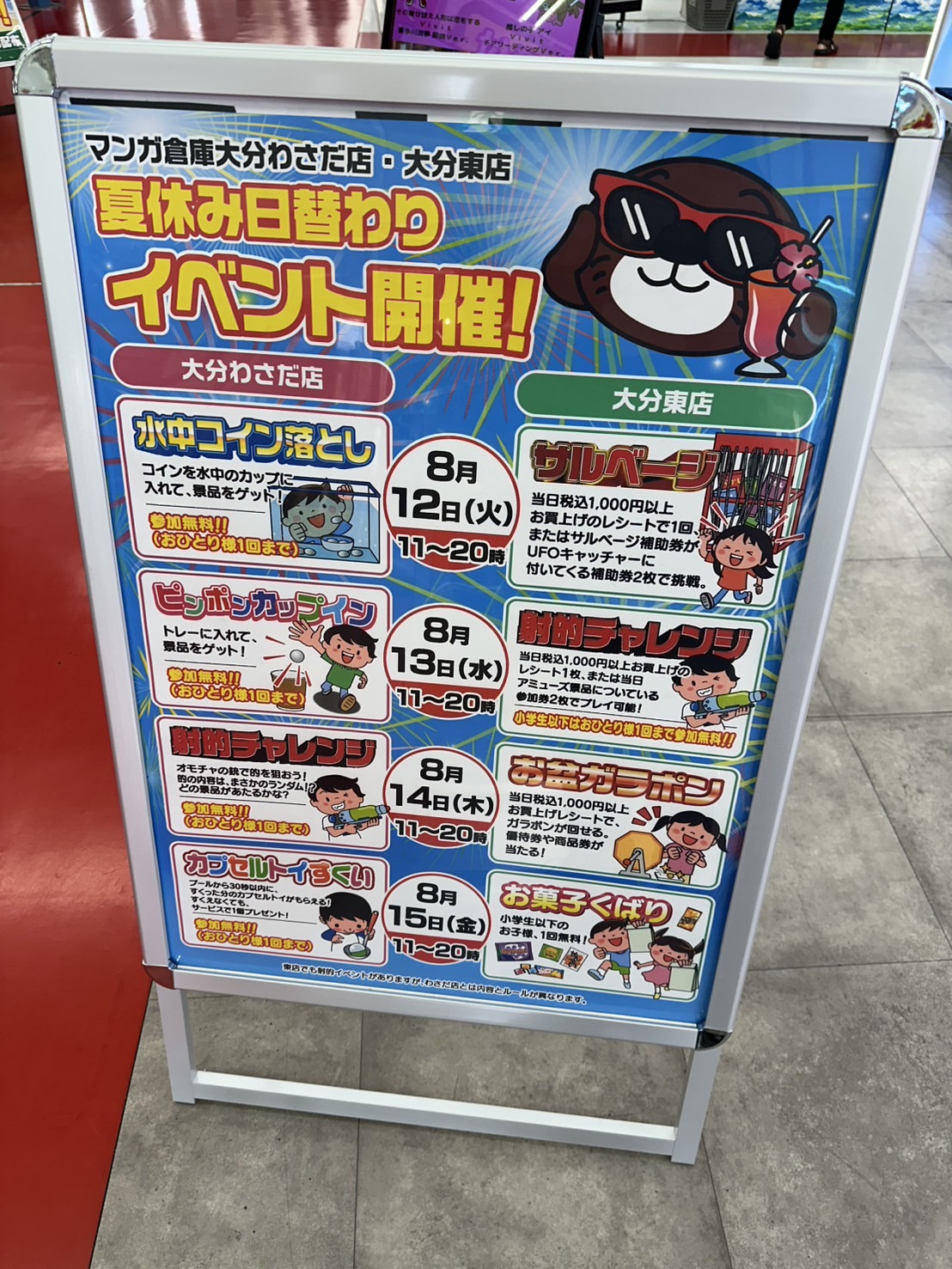 2025.08.12 イベント情報 takalab_2 ★《8月12日》11時〜20時までは、サルベージイベント‼️★ マンガ倉庫大分東店日替わりイベント開催のお知らせ‼️ 8/12(火)11時〜20時までは、サルベージイベント‼️ 今回のイベント参加条件は… ・税込1000円以上のレシート ・アミューズで景品を取るとついてくる参加券2枚 どちらかでサルベージが1回参加出来ます。 ご来店お待ちしてます。 **************** こちら↓もぜひチェックしてみてくださいね♪(*´▽`*) ・最新のイベント情報はこちら ・最新の買取情報はこちら コメントを残す コメントをキャンセルメールアドレスが公開されることはありません。 ※ が付いている欄は必須項目ですコメント ※ 名前 ※ メール ※ サイト 新しいコメントをメールで通知 新しい投稿をメールで受け取る Δ