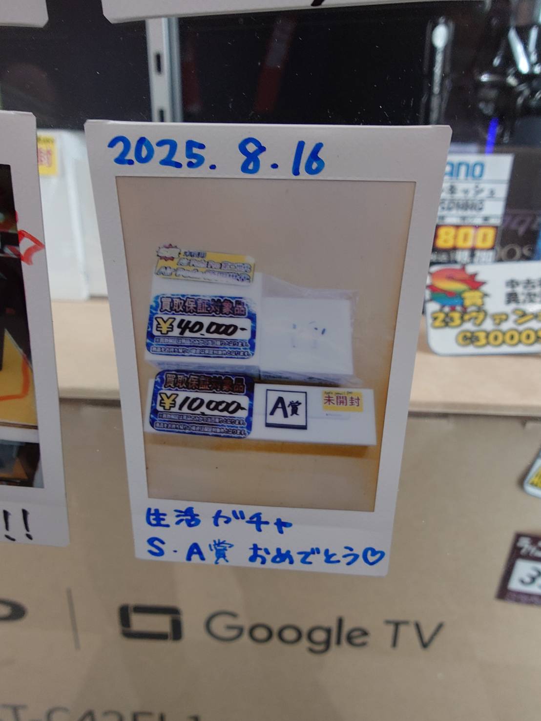 当店入口で開催中の生活・雑貨ガチャでS賞が当選致しました!景品は[AirPods Pro 第2世代+AirPods4]をお選びいただきました!おめでとうございます!