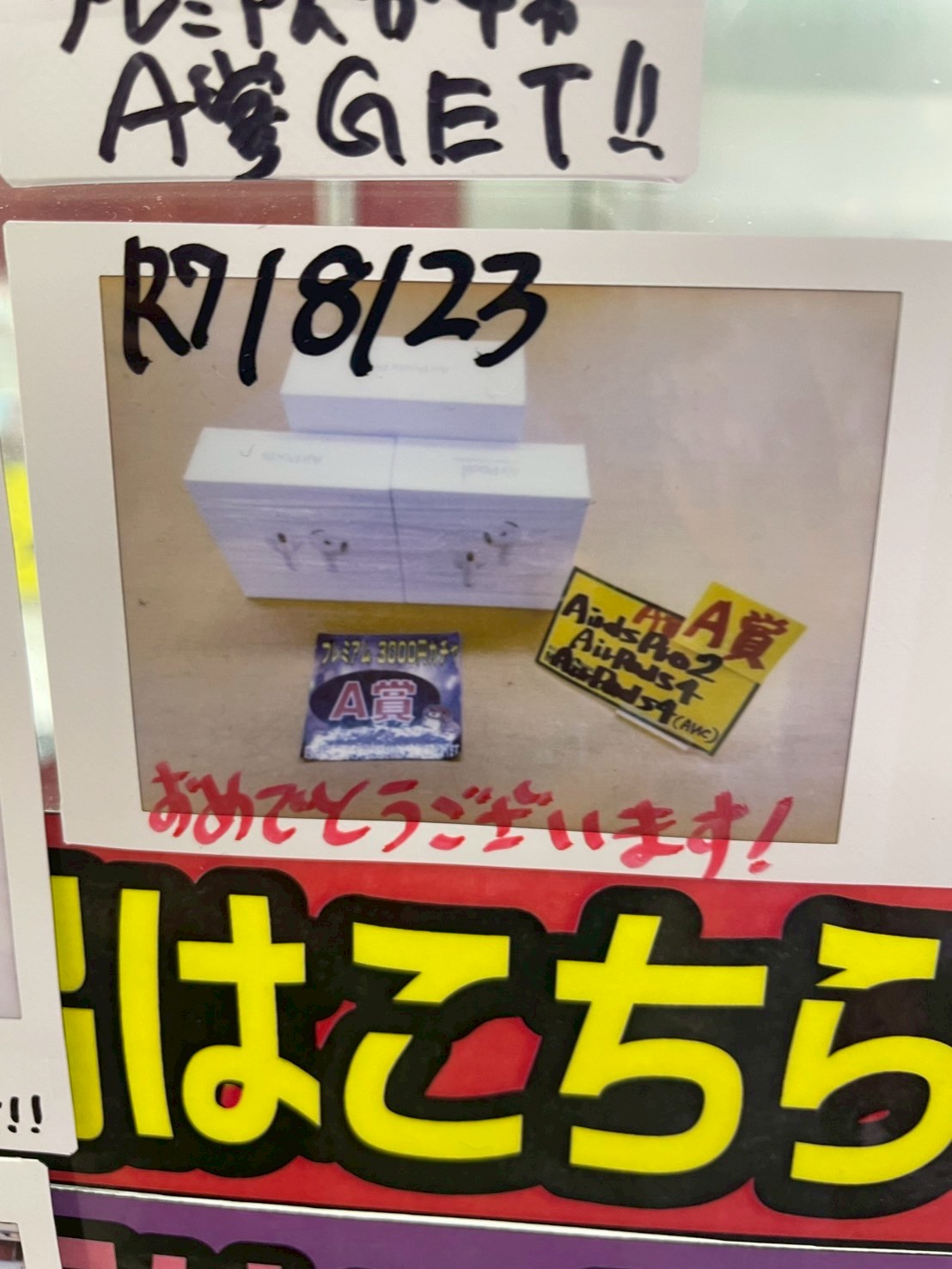 2025.08.26 ガチャ takalab_2 ★プレミアム3000円ガチャA賞出ました! 他★ ★お知らせ★ 8/23プレミアム3000円ガチャA賞 8/24プレミアム3000円ガチャS賞出ました! おめでとうございます!! 8/24、8/25ゲーム2000円ガチャ2日続けてS賞出ました!! おめでとうございます!! 次に当たりが出るのはどのガチャか… ご来店お待ちしております! コメントを残す コメントをキャンセルメールアドレスが公開されることはありません。 ※ が付いている欄は必須項目ですコメント ※ 名前 ※ メール ※ サイト 新しいコメントをメールで通知 新しい投稿をメールで受け取る Δ