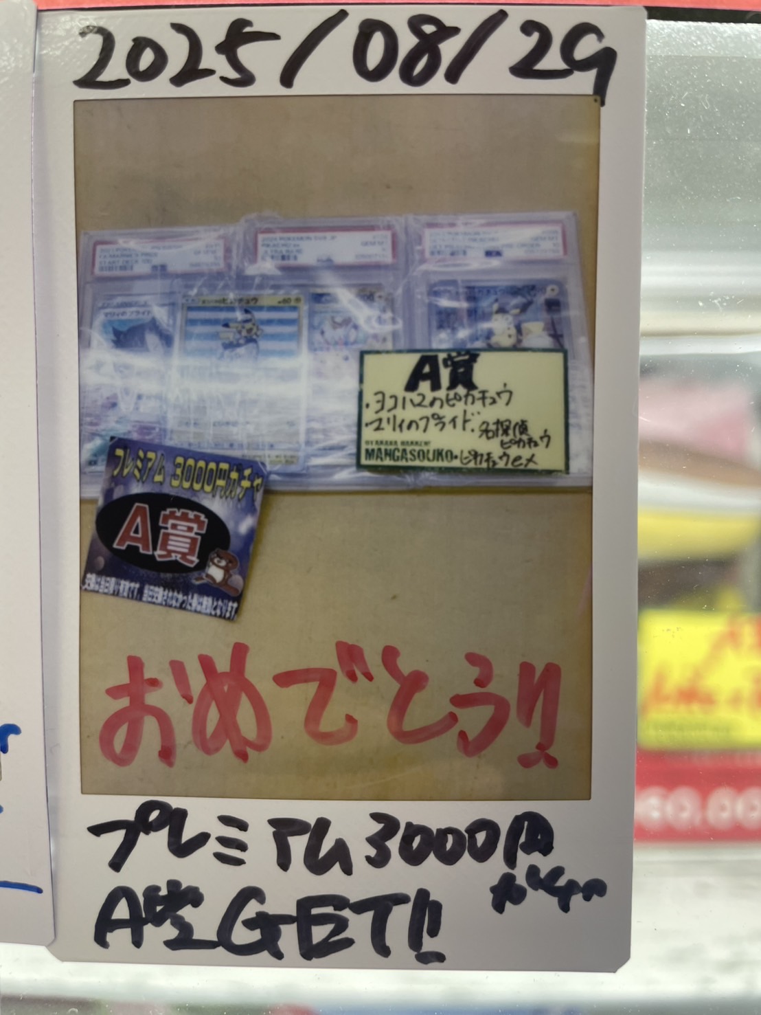 2025.08.30 ガチャ takalab_2 ■プレミアム3000円ガチャA賞出ました!■ ★お知らせ★ プレミアム3000円ガチャA賞出ました! おめでとうございます! まだまだ当たりが出そうなマンガ倉庫大分東店! ご来店お待ちしております! コメントを残す コメントをキャンセルメールアドレスが公開されることはありません。 ※ が付いている欄は必須項目ですコメント ※ 名前 ※ メール ※ サイト 新しいコメントをメールで通知 新しい投稿をメールで受け取る Δ