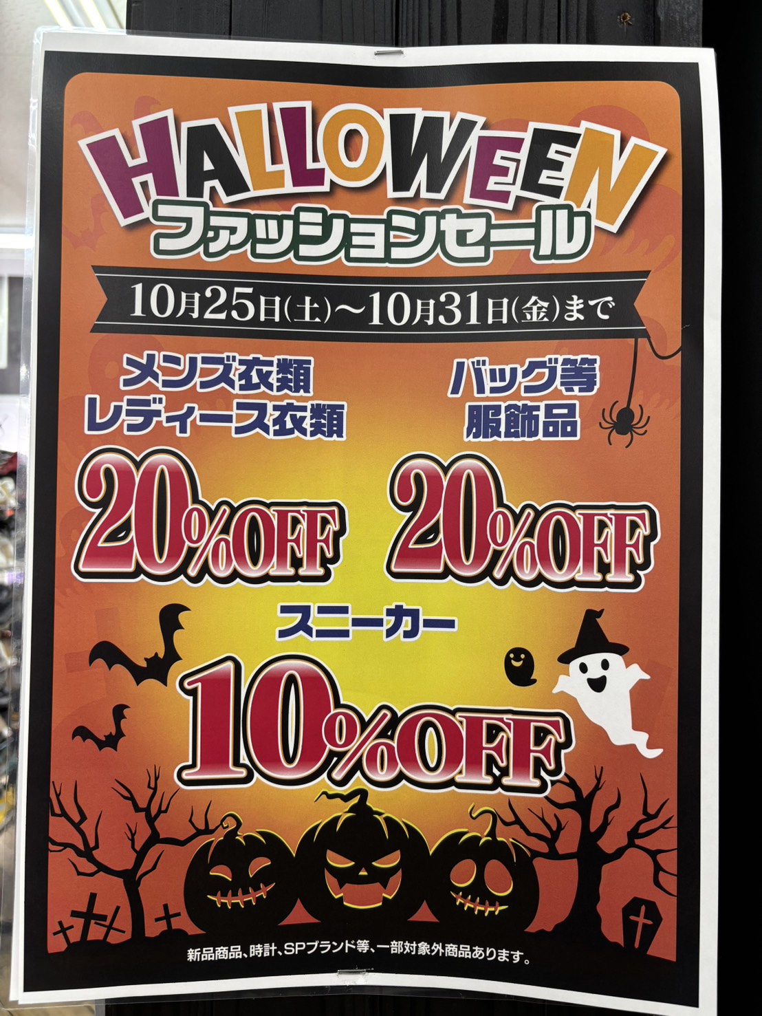 2025.10.28 イベント情報 takalab_2 ★《10月31日まで》🦇🕸🎃ハロウィンセール開催中🎃👻💀★ 【🦇🕸🎃ハロウィンセール開催中🎃👻💀】 ファッションコーナーにてハロウィンセール開催中‼️💁🏼♀️ 🕸🦇🎃👻🕸🦇🎃👻🕸🦇🎃👻 メンズ衣類・レディース衣類が20%OFF‼️ バッグ等 服飾品が20%OFF‼️ スニーカーが10%OFF‼️ 🕸🦇🎃👻🕸🦇🎃👻🕸🦇🎃👻 10/25(土)〜10/31(金)まで!!!! お見逃しなく👀🫣❤️🔥 ※セール対象外の商品もございます。 ※割引券、お買物券との併用はできかねます。 ※新品商品はすべてセール対象外とさせていただきます。 コメントを残す コメントをキャンセルメールアドレスが公開されることはありません。 ※ が付いている欄は必須項目ですコメント ※ 名前 ※ メール ※ サイト 新しいコメントをメールで通知 新しい投稿をメールで受け取る Δ