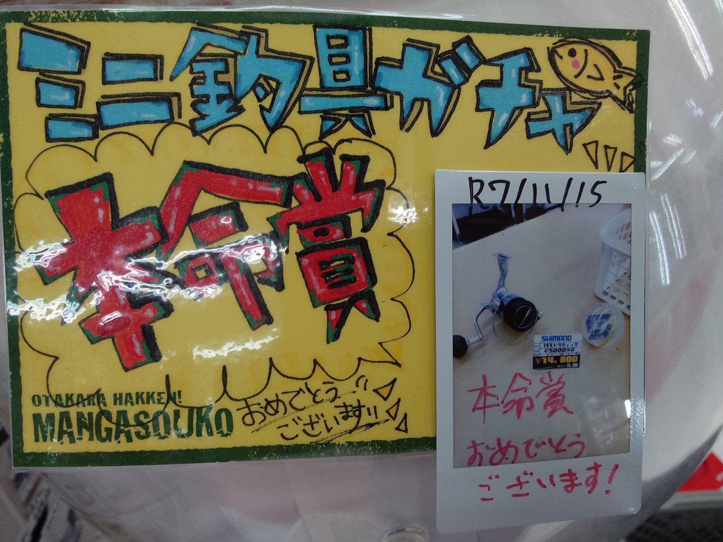 【釣具コーナーよりガチャご当選のお知らせ!】