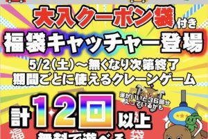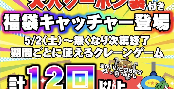 【アミューズコーナーよりイベントのお知らせ】 📣3店舗合同ゴールデンウィークイベント📣 ゴールデンウィークはマンガ倉庫&トレトレ倉庫で遊ぼう🎉 アミューズコーナー🕹️では 大入クーポン袋付き福袋🛍️キャッチャー登…