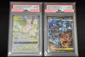 🕺🏻カードコーナーよりお知らせ🕺🏻 PSA10のサーナイト&ニンフィアGXとメガリザードンXexを買取させていただきました! ありがとうございます🧚🏻♀️ ポケモンカード、ワンピースカードなど様々なジャンルのカ…