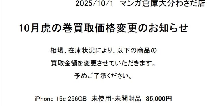 お宝買取虎の巻10月号ができました!°˖✧◝(⁰▿⁰)◜✧˖° WEBチラシにも一緒に掲載しておりますので、そちらもご覧ください! 2025年10月1日現在の価格なので、 最新の価格はWEBチラシバナーをタップしてご確認…