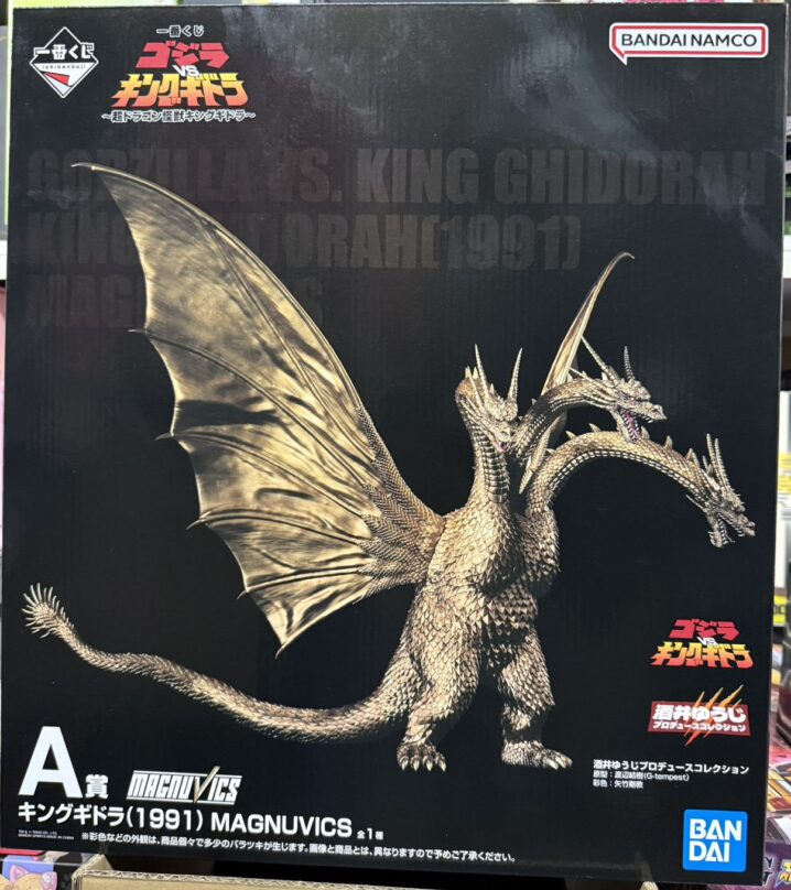 特撮のコーナーから買取情報です! 今回は一回のチャレンジにとても勇気がいる一番くじ”ゴジラVSキングギドラ 超ドラゴン怪獣キングギドラ”からこのフィギュア! 伝わりますかね?このサイズ感! ゴジラ…