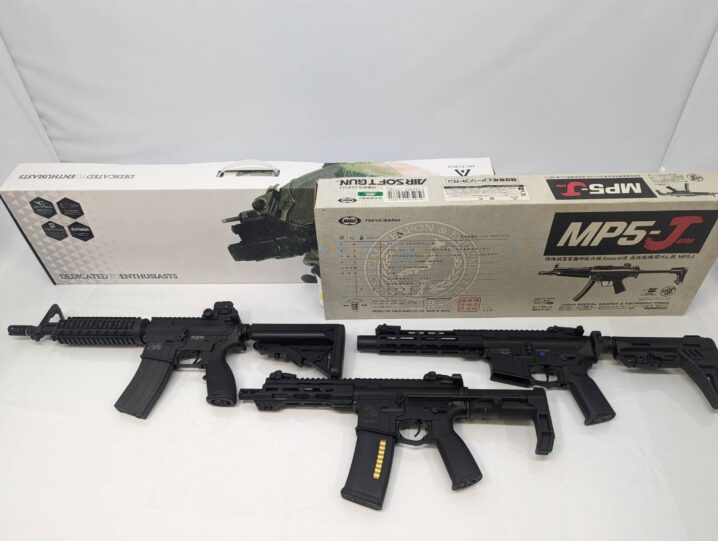 おもちゃのコーナーから買取情報です! 本日はミリタリー用品の買取から一件、紹介させてください! 東京マルイM4CQBR GBB、東京マルイMP5J、KSC T6 TEG コンパクト、AIRSOFT97 C.A.T. AR…