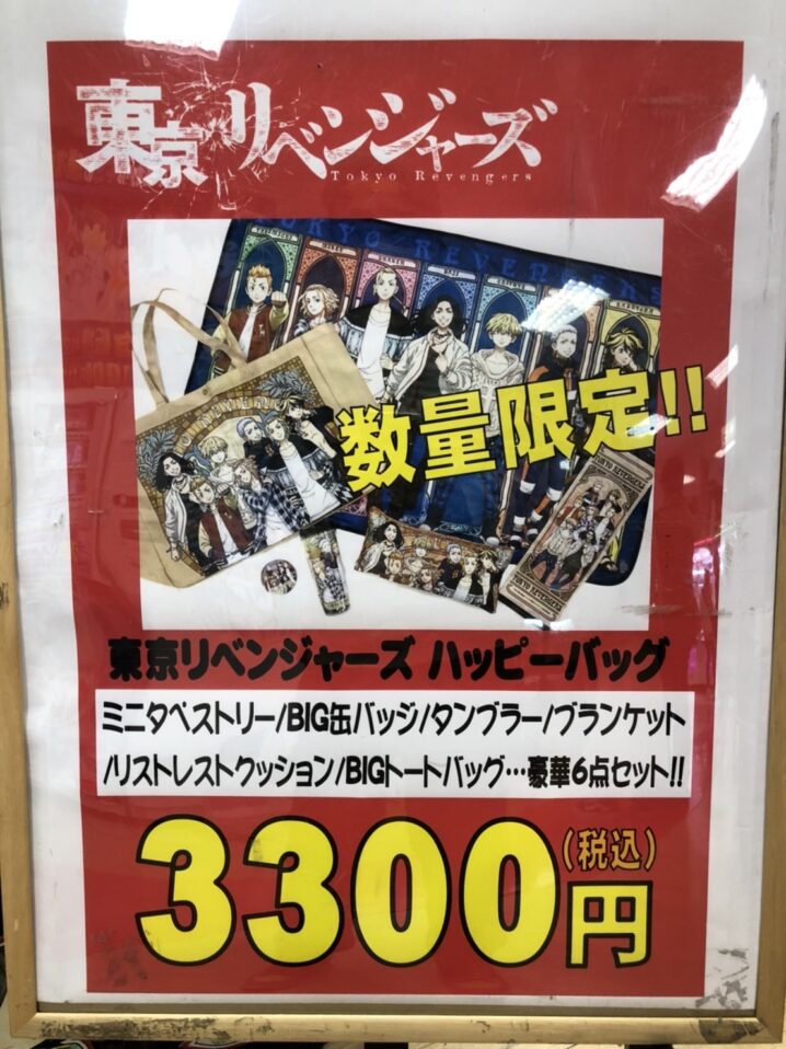 【東京リベンジャーズ】のハッピーバッグ入荷しました‼️‼️ こちらはタペストリー、タンブラー、ブランケット、などなど 豪華6アイテムが入ったお買い得な福袋となってお…