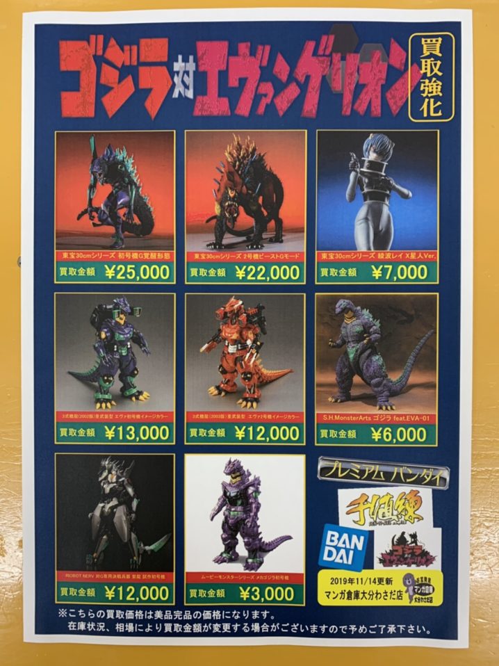 エヴァンゲリオン対ゴジラ商品買取大募集しています!! ※11/15現在の買取価格となっております。 是非当店にお持ち下さい!