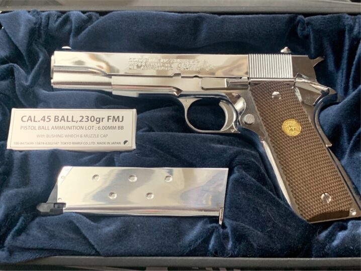 ミリタリーのコーナーから買取情報です! ガスガン買取させていただきました! コルト ガバメント シリーズ’70 ニッケルフィニッシュです! お持ちいただいたお客様、誠にありがとうございます! エアガンだけでな…