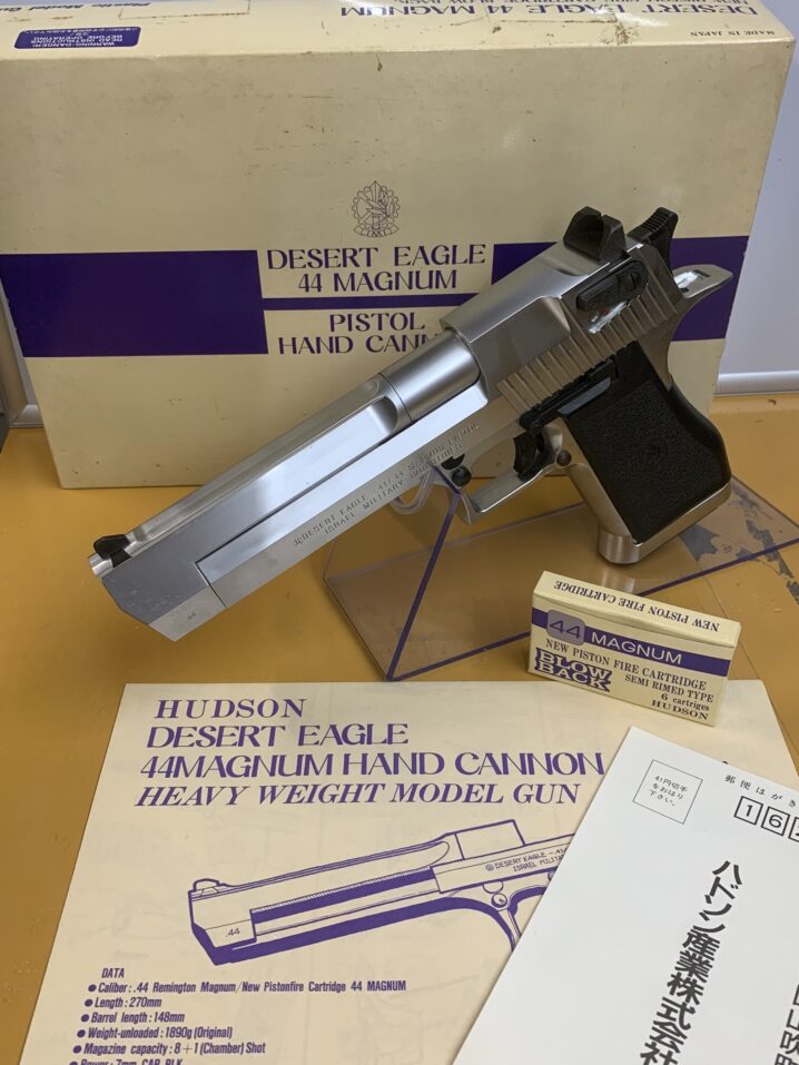 モデルガン買取させていただきました! ハドソン モデルガン デザートイーグル 44マグナム ハンドキャノン ほぼ完品状態です! お持ち込みいただき、誠にありがとうございます! 国産エアガンだけでなく、海外製エアガンも買取…