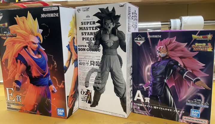 フィギュアのコーナーから買取情報です! 本日は世界中で大人気のこの少年漫画コンテンツ! ドラゴンボールの一番くじフィギュアたちです! ちょっと懐かしいところのフィギュアを買い取らせていただきました! SMSPのフィギュア…