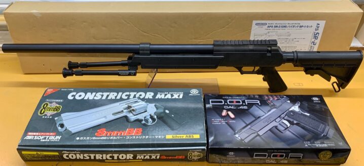エアガン買取させていただきました! マルゼン エアーライフル APS SR-2 オリジナル バイポッド BP-1セット マルシン 8mmBBガスリボルバー CONSTRICTOR MAXI シルバーABS 東京マルイ ガ…