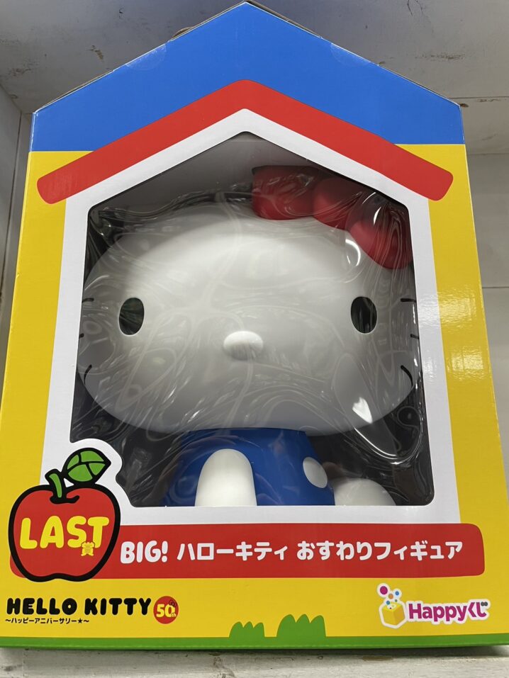 おもちゃコーナーの買取情報です! いつかこちらのコーナーで紹介させていただいたhappyくじのキティちゃんぬいぐるみを覚えてらっしゃいますでしょうか? 今回はなんとフィギュアの方です! デカ!ちょっと伝わりにくいんですけ…