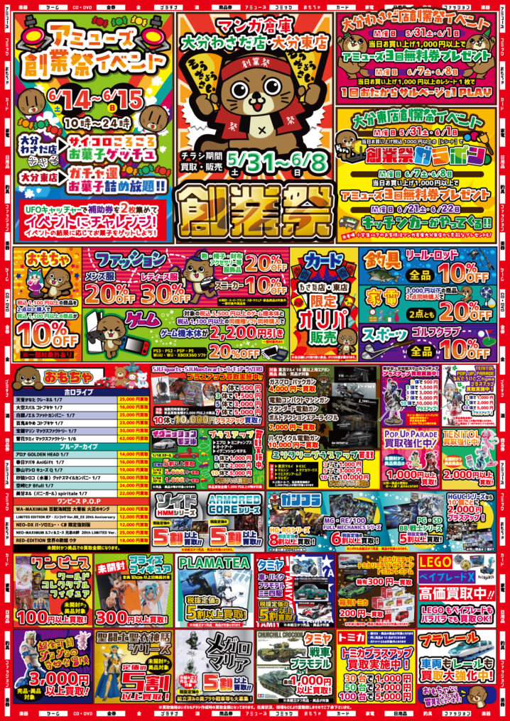 12/20(土)・12/21(日)の2日間 マンガ倉庫わさだ店•東店、トレトレ倉庫佐伯店にて3店舗合同イベント開催! メダル付きお菓子袋をGETしてガチャにチャレンジできる激アツイベントだ‼️…