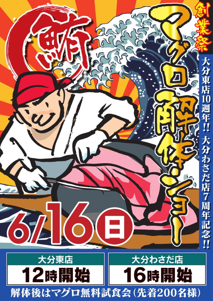 ☆★おかげさまでマンガ倉庫大分東店は10周年・大分わさだ店は7周年☆★ 創業祭で6/16にマグロの解体ショーを開催°˖✧◝(⁰▿⁰)◜✧˖° 大分東店は12時から 大分わさだ店は16時から 解体ショースター…