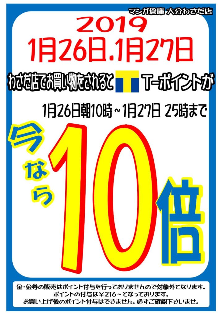 Tポイント10倍デー!!!!!! マンガ倉庫大分わさだ店では今日、明日の2日間!! お買い上げ時のTポイントが10倍!!!! このチャンスをお見逃しなく(^o^)!!! この機会に是非お買い物しちゃってくだ…
