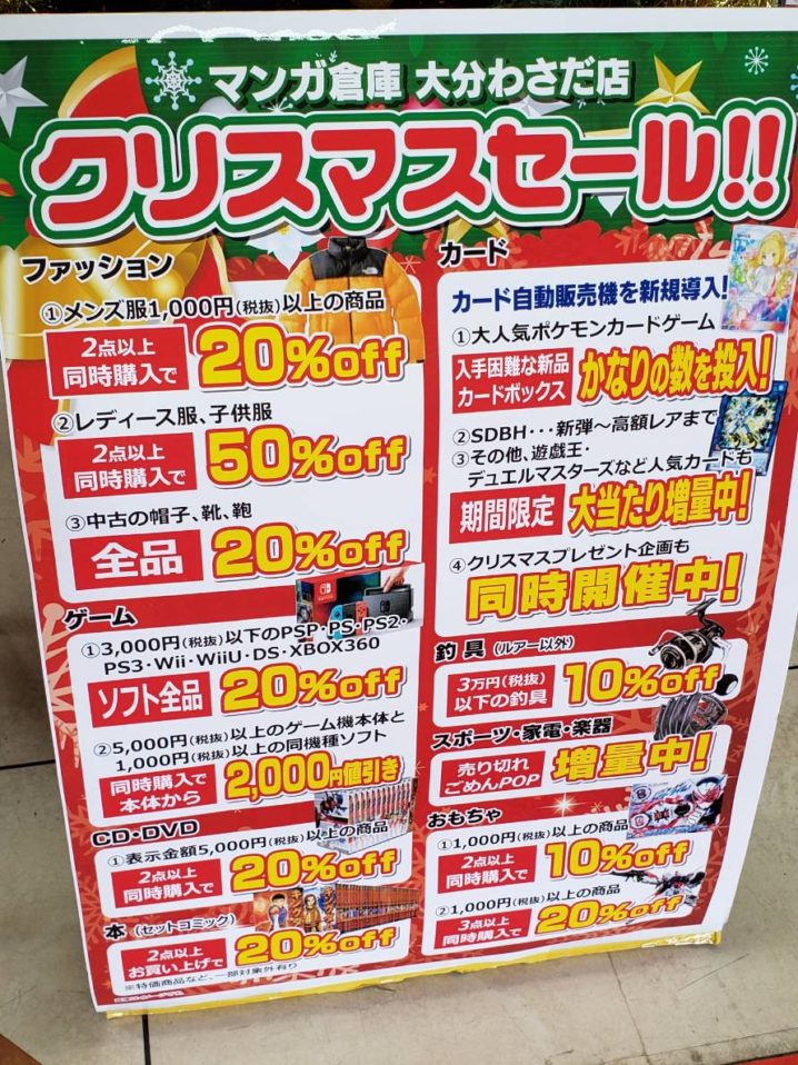 一足早く!マンガ倉庫大分わさだ店では、クリスマスセールを行っております! 全コーナー、お得にお買い物できます‼️ 🎄まずは本コーナー! セットコミック商品を2点以上一緒にお買い…