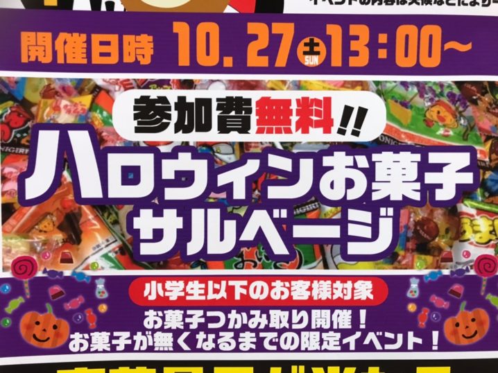 今日と明日はハロウィンイベント行なってます♪ 今日はお菓子サルベージです(^∇^) 小学生以下のお子様は無料ですよ♪ 家族皆さんでお越しください♪お待ちしております(╹◡╹)