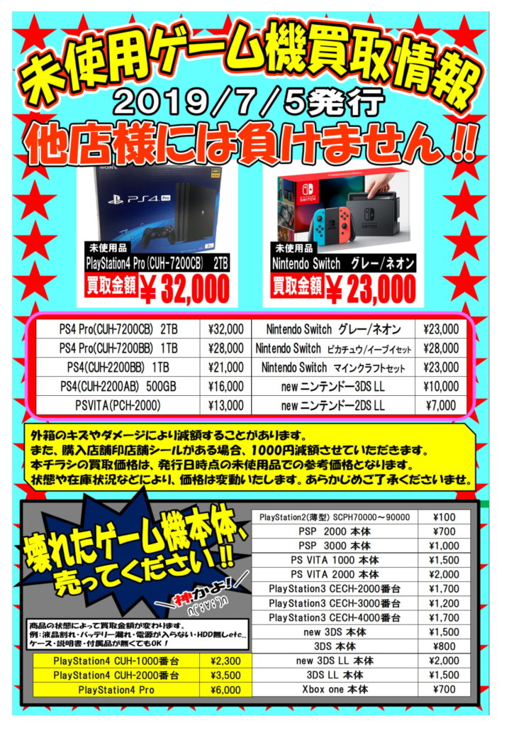 ニンテンドースイッチ!!! プレイステーション4!!! そしてその他のゲーム機も!! 7月末まで何台でも! 全部こちらの金額で買い取らせていただきます!!! ※上記の買取金額は未使用品かつ傷や店舗印のない最…