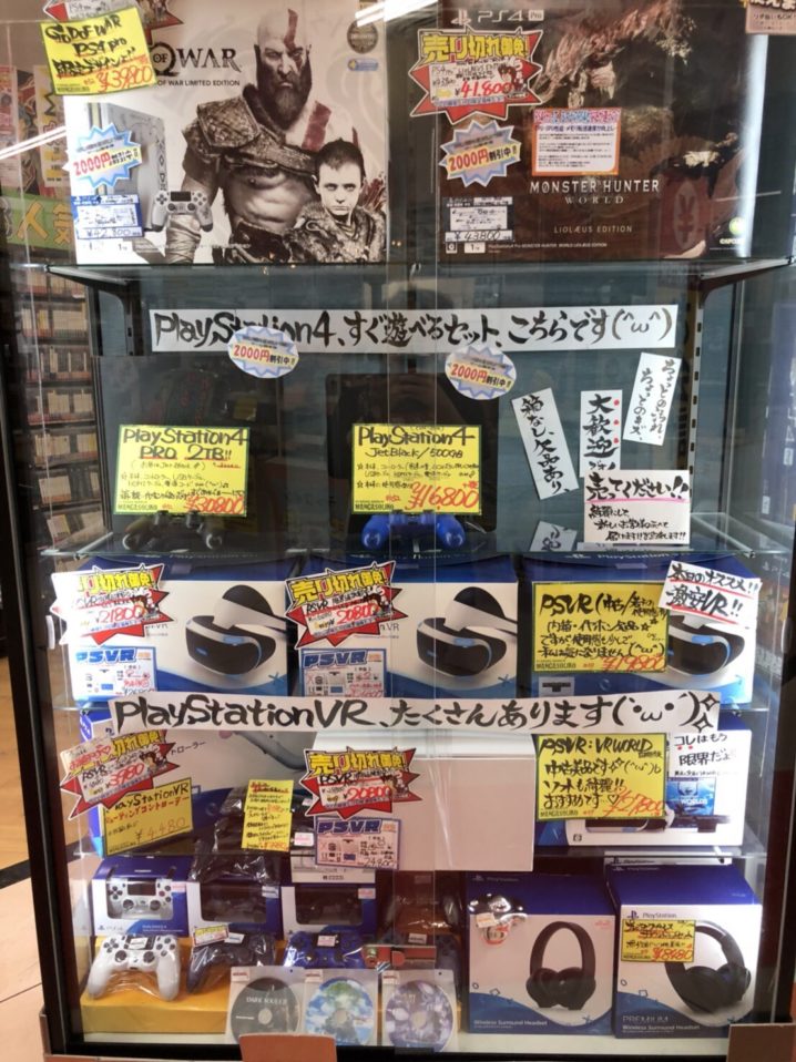 箱にすこーし傷みがあるNintendo Switch(未使用)が… 安い!!! PS4すぐ遊べるセットが… 安い!!! 見に来るしかないでしょうこれは…٩(´✪ω✪`)۶! あ! 中古Switchも増えましたよ…