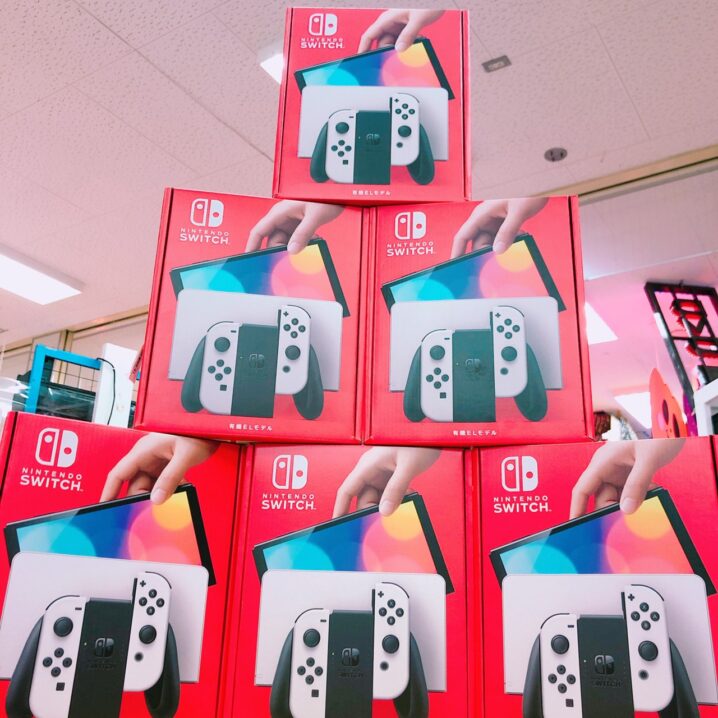 皆様のおかげで!!!! 有機ELスイッチタワーが完成しました!!!😭✨ お売り頂いたスイッチをあつめたらもっともっと大きいタワーができるのですが、 その日に買い取れたスイッチで… つくりたか…