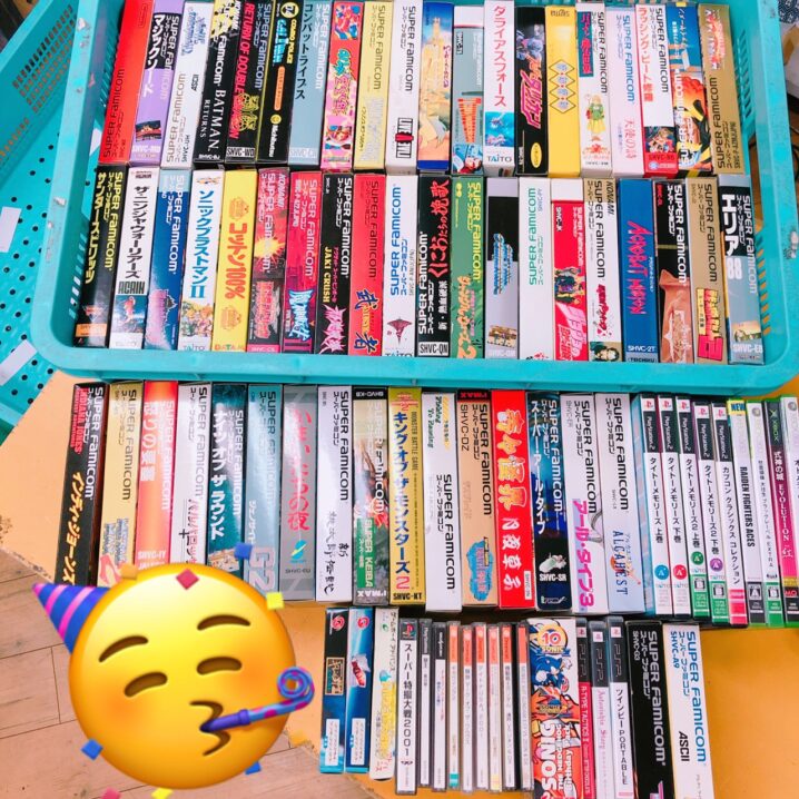 み、み、みてください…… この激レアレトロソフトの山を……!! まだあるんですよ?!!! この中、ぜーーーーんぶレトロソフトなんです!!! 担当でも初見のソフトが何十本も……🥺💕 まさしく…