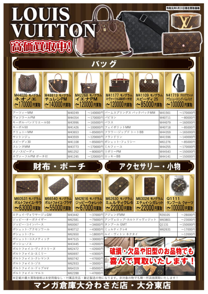 Louis Vuitton バッグ・財布・アクセサリー・小物を買取強化中!! 最新作から旧作まで喜んで高価買取致します!! 他の店舗に負けない自信があります!! 是非、マンガ倉庫大分わさだ店・大分東店にルイヴィトンはお任…