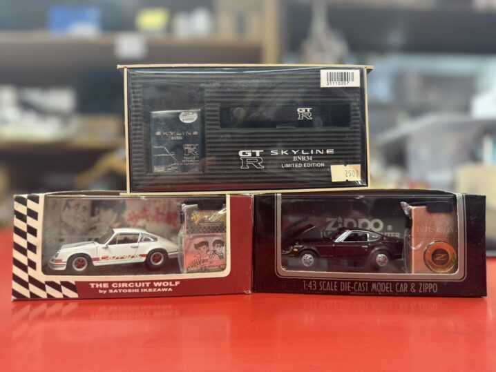 ファッションコーナーより NISSAN Fairlady240ZG NISSAN SKYLINE GT-RBNR34 サーキットの狼 PORSCHE Carrera RS コラボZIPPO 買取させて頂きました!!! お…