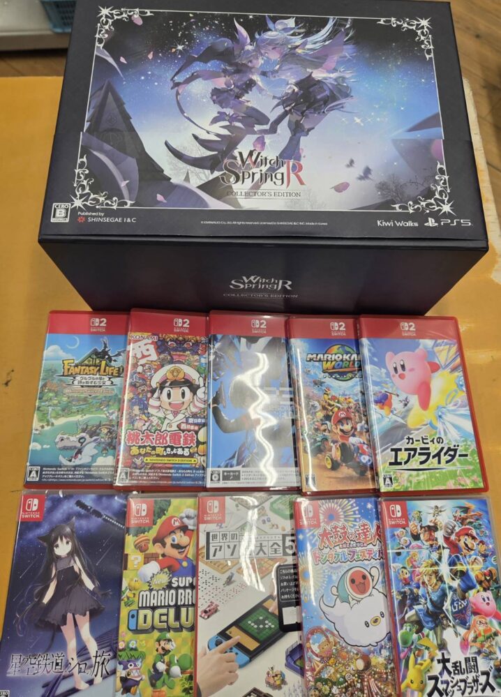 本日もたくさんのゲームを買い取らせて頂きました! お持ち頂きましたお客様、ありがとうございます!! PlayStation5ソフト『魔女の泉R コレクターズエディション』をはじめ、マリオカートワールド、カービィのエアライ…