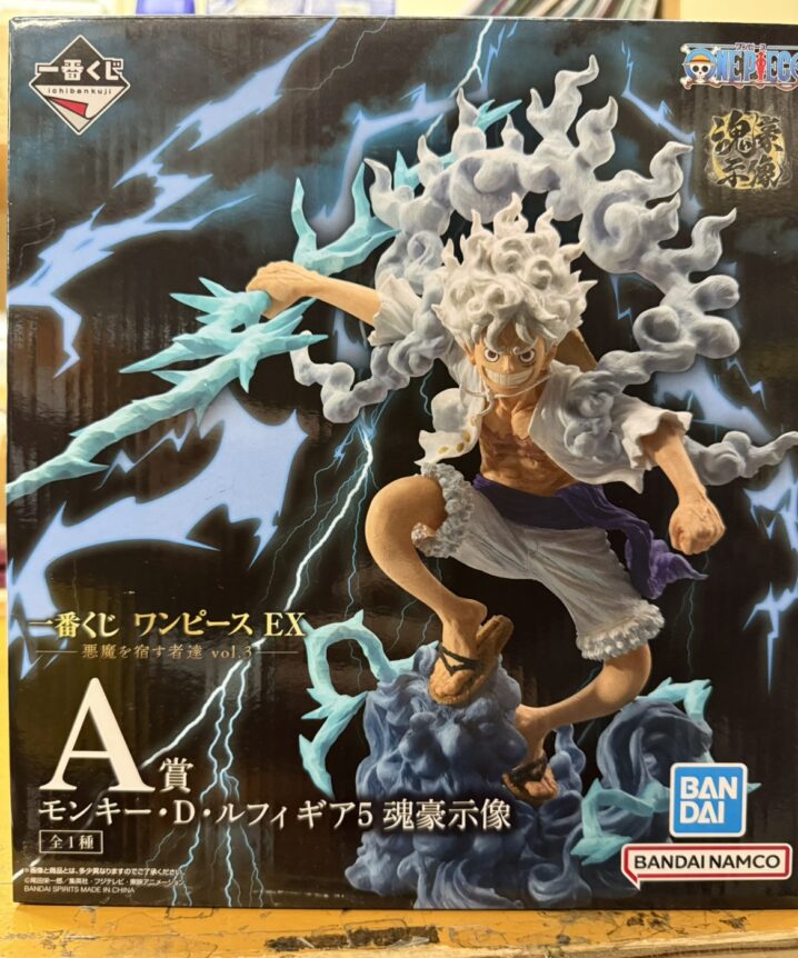 フィギュアのコーナーから買取情報です! 本日はお馴染みワンピースの最新一番くじから!主人公をまずは紹介しておきましょう! ワンピースの一番くじにおいてA賞の枠はやはりコイツ! “A賞 ルフィ ギア5 魂豪示像…