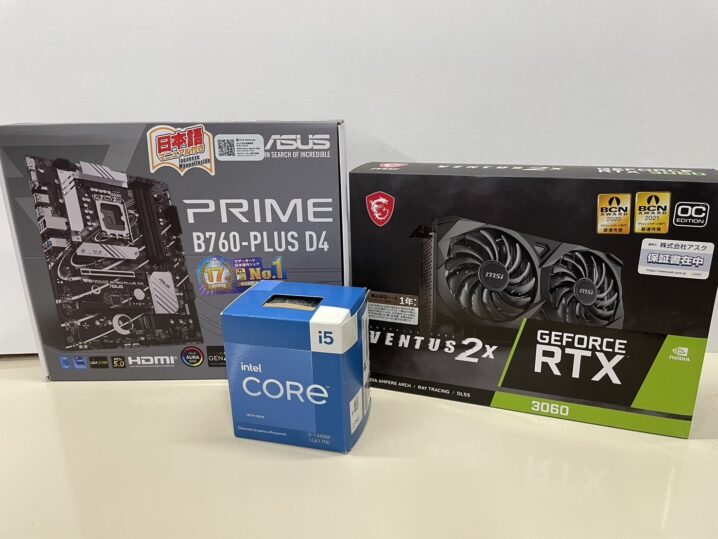 生活コーナーの買取情報です! 今回はPC周辺機器…ではなく!なんとパソコンの中のパーツ類の買取情報となります! 今回のラインナップはこの通り! ASUSのマザーボードやGeFORCEの3060グラボ、そしてIntel C…