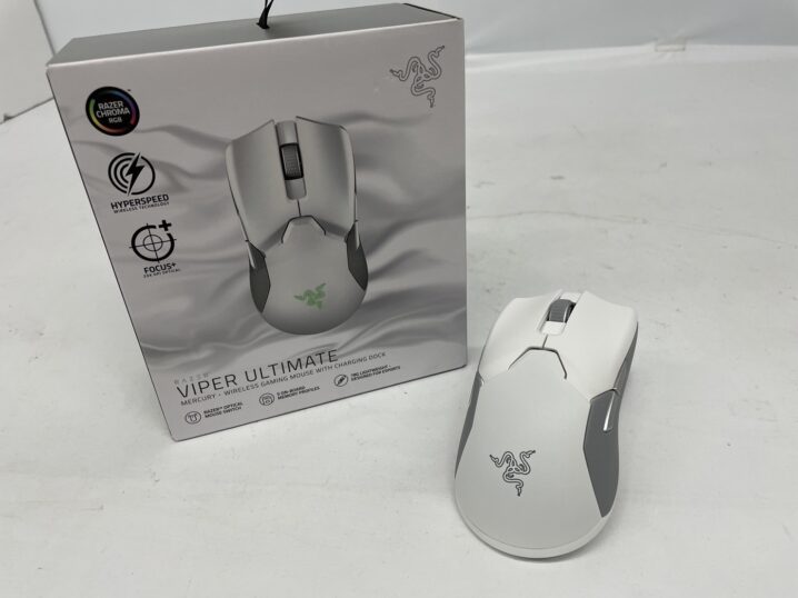 家電コーナーの買取情報です! 本日は有名メーカーのゲーミングマウスをご紹介させていただきます! はい!こちらRAZERブランドの”VIPER ULTIMATE”になります! 有線と無線の切り替えが…