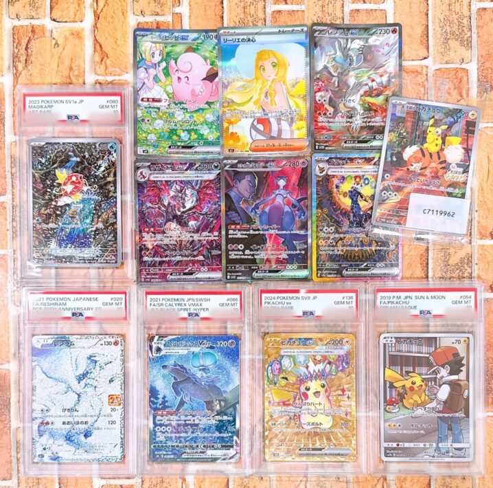 PSA10 ピカチュウex PSA10 ゼクロムex PSA10 シロナのガブリアスex PSA10 ミモザ PSA10 ソルガレオ&ルナアーラGX PSA10 NAGABA ブラッキー 新弾のシングルカードなど…
