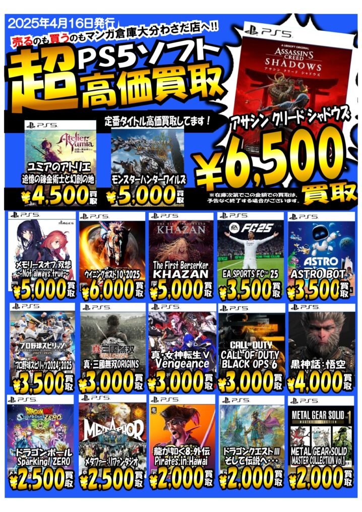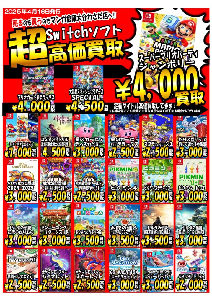 本日も当店はNintendo Switch2本体の買い取りを大募集中です! Switch2をお売り頂く際はぜひわさだ店をご利用ください! みなさまのご来店をお待ちしております!!   ※2025/11/30現在…