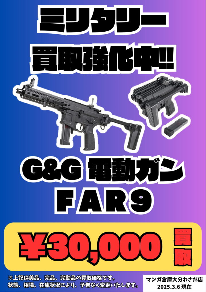 電動ガンFAR9 を¥30,000買取! 電動ガンTR16 GMS MK1 9″を¥37,000買取! レバーアクションガスライフルLevAR各種を¥37,000買取! ※箱含む、美品かつ完品・完動品が対象と…