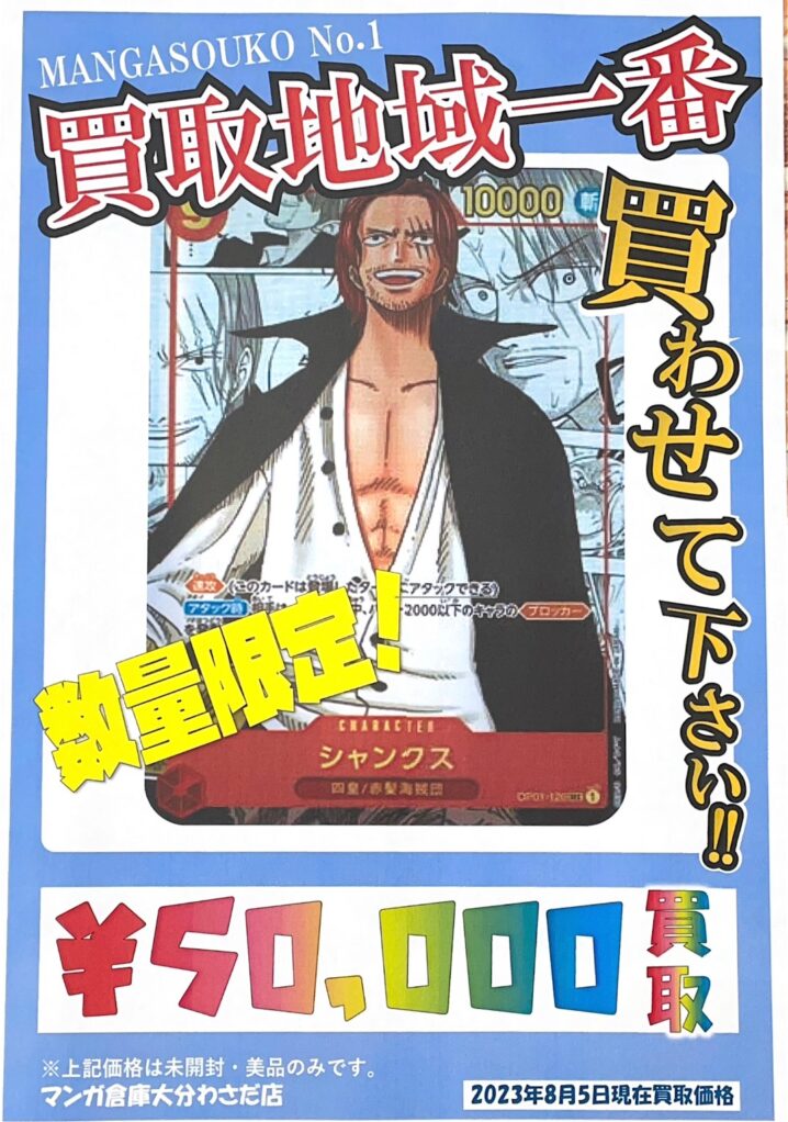ドン!! ワンピースカードのキラ ¥5 買取保証させていただきます☆☆☆ お家に眠っているキラ、マンガ倉庫わさだ店で売りませんか?? 対象カードは R/L/UCなどの光っているカードです☆ 光ってれば5円ってアツくない?…