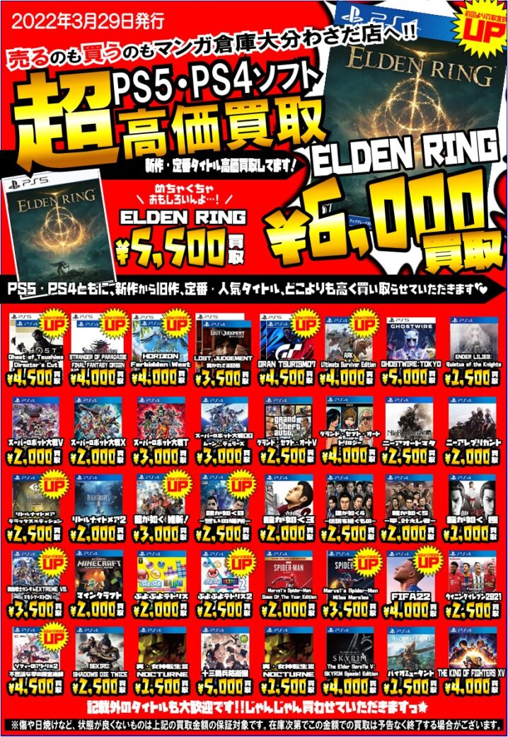 昨日のPS4、PS5に続きまして、 買取金額には自信しかありません💪( ᐛ 💪)!!! こんなに高価買取はマンガ倉庫大分わさだ店だけ(`・ω・´)フンスッ! そして見たことも聞いたこともな…