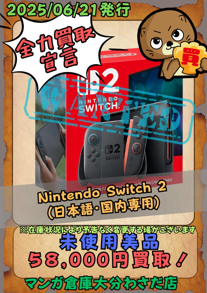 6月5日発売してから常に話題が絶えない最新ハード「Nintendo Switch 2」 マンガ倉庫大分わさだ店ではまだまだ強化買取中! 国内通常版・国内マリオカート同梱版共に地域最高買取金額に挑戦しています! ぜひ!マン…