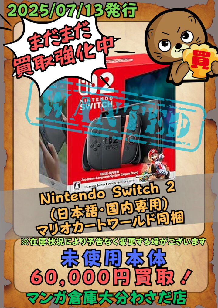 マンガ倉庫大分わさだ店では、まだまだ最新ゲームハード「Nintendo Switch 2」の買取強化中です! もしご不要でどこかにお売りになる際はぜひ一度当店へお持ち込みください! ※2025/7/14 現在の価格となり…