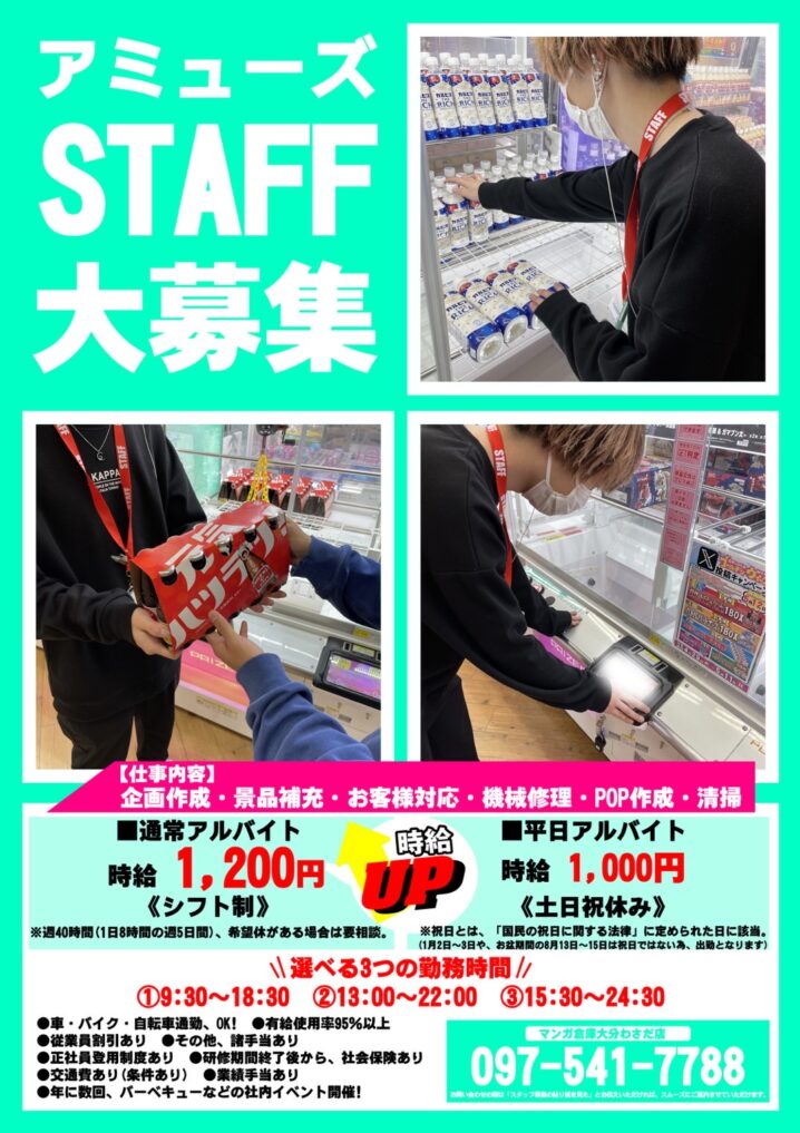★アミューズメントスタッフ大募集中!!UFOキャッチャーが好きな人歓迎★ ✨業績好調の為アルバイトスタッフ急募!✨ 先輩スタッフが一から教えますので未経験の方でもOK! 今いるスタッフの大半が…