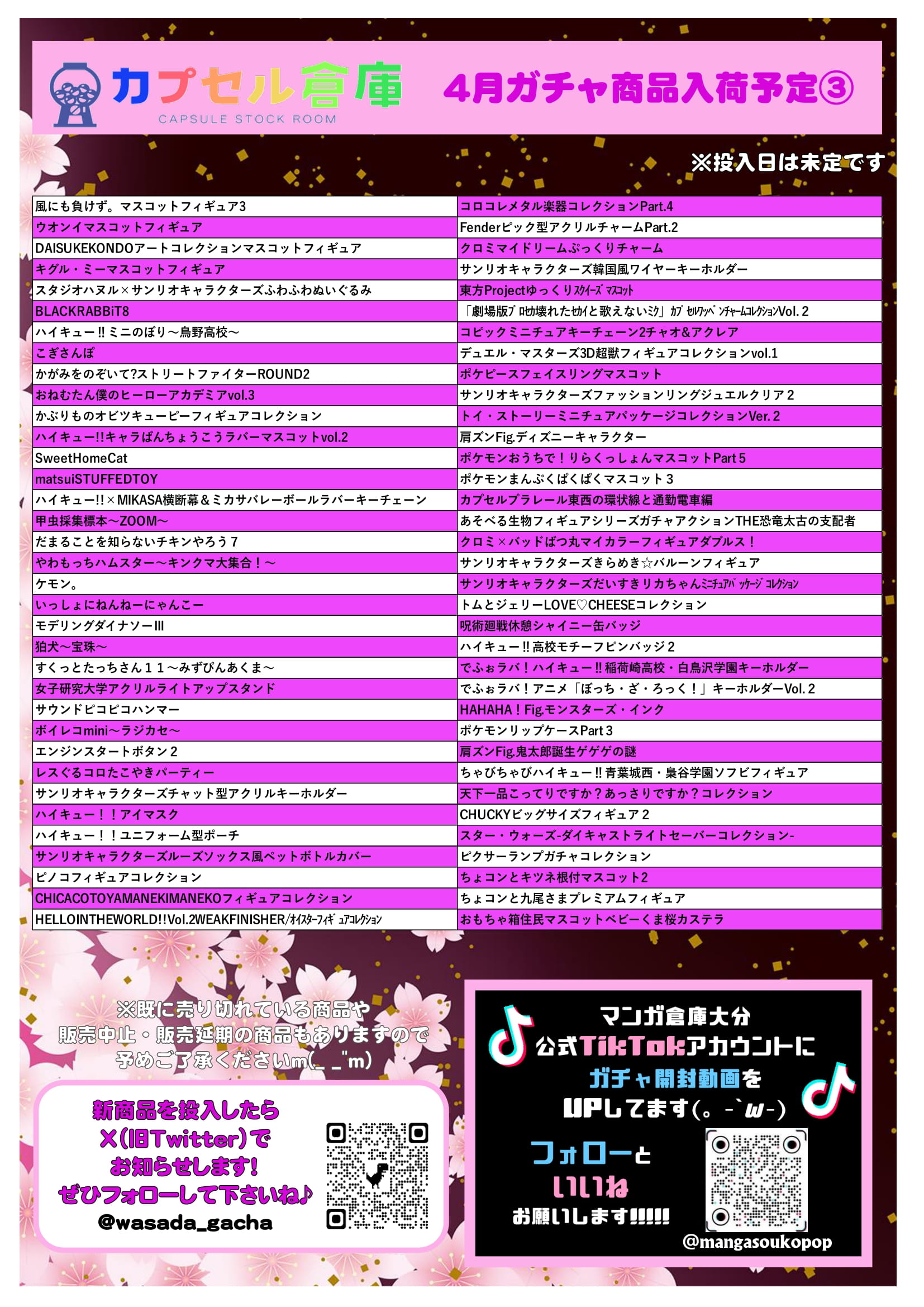 さらにマンガ倉庫大分公式TikTokアカウントにてガチャガチャ開封動画をUPしてます🤩