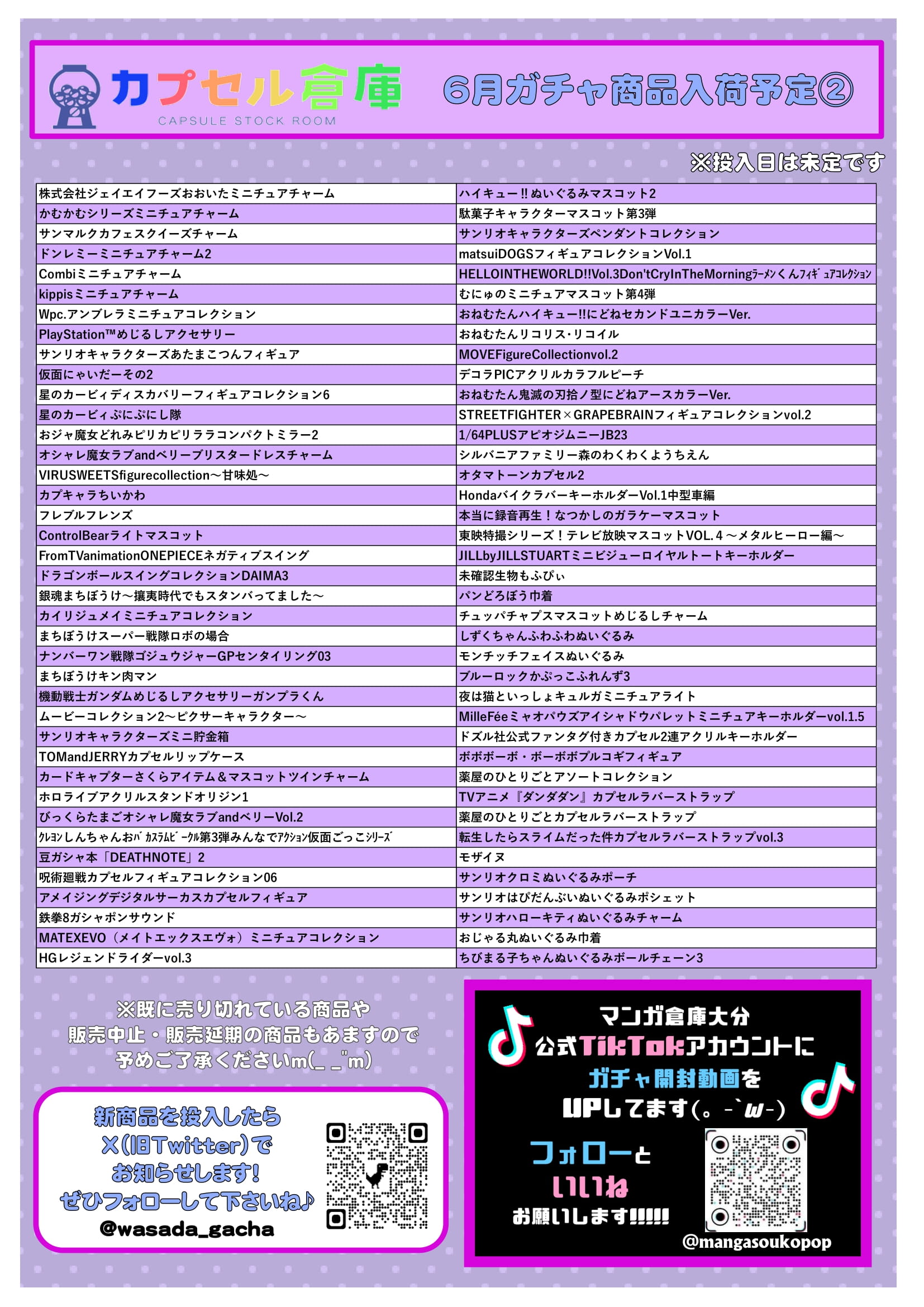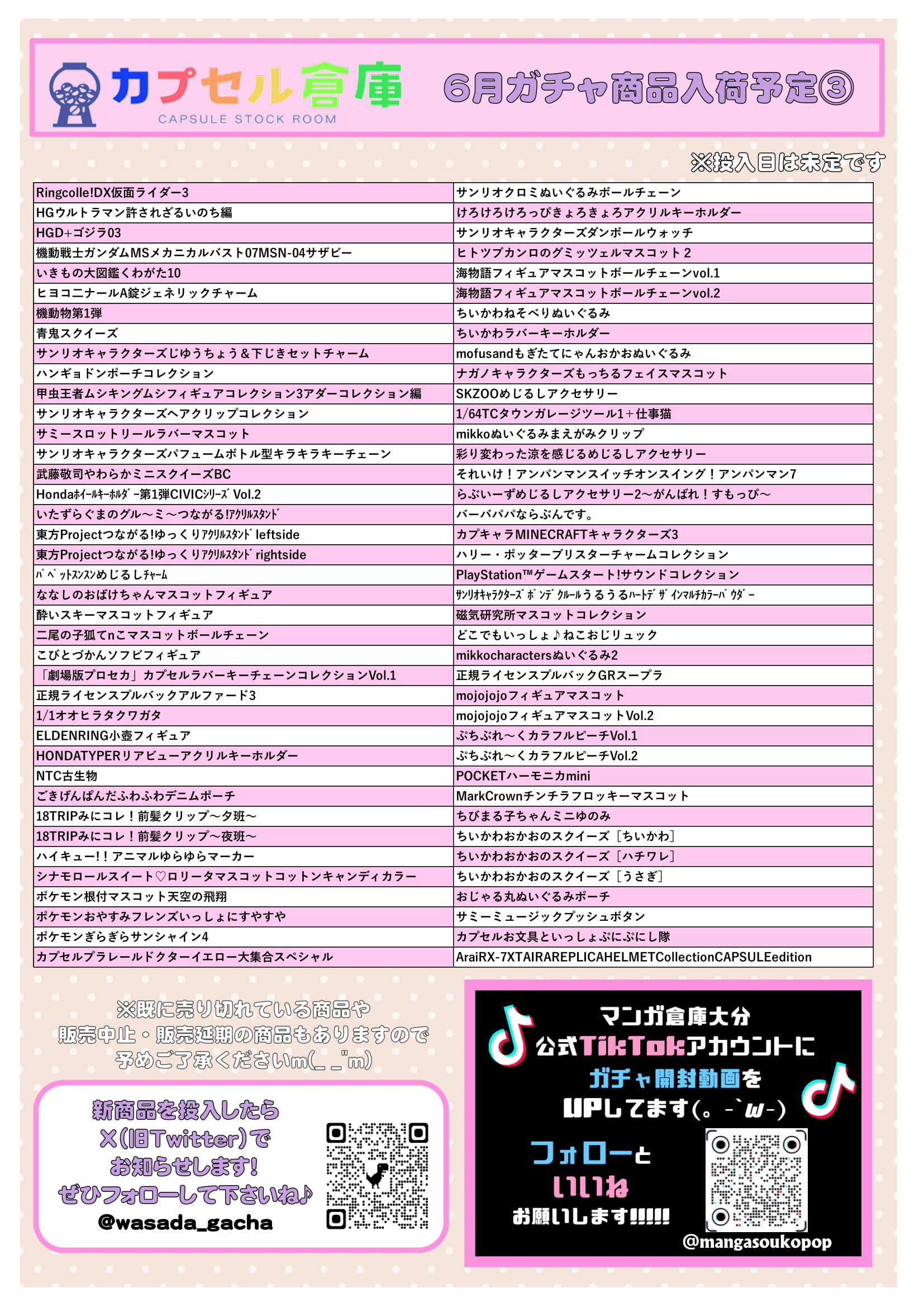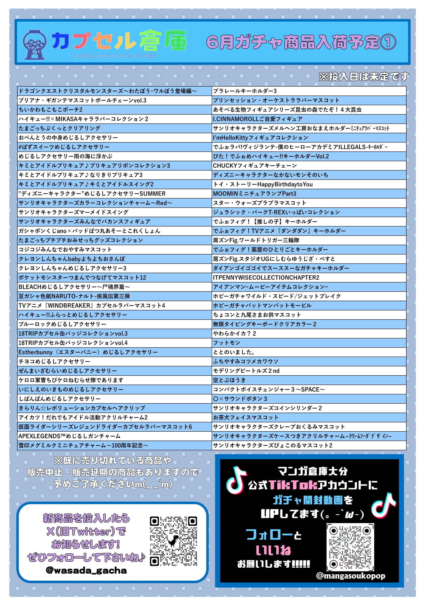 さらにマンガ倉庫大分公式TikTokアカウントにてガチャガチャ開封動画をUPしてます> ·̫ <